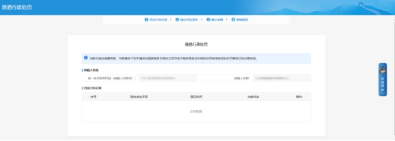 三、簡易行政處罰菜單進入點擊操作下面的受理按鈕查看違法行為記錄。確認違法事實后填寫經(jīng)辦人姓名點擊右上角的確認。