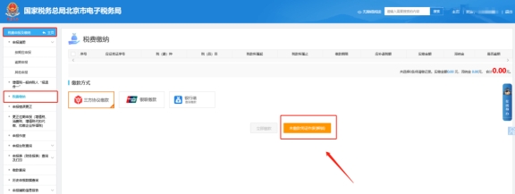 二、稅費申報及繳納—稅費繳納界面界面選擇銀行端打印繳款憑證前往銀行繳款。繳款后再返回簡易處罰界面查看狀態(tài)。