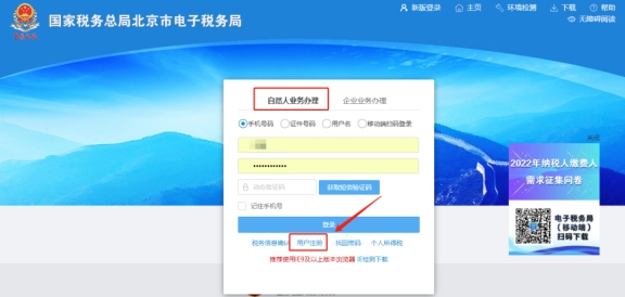 一、點(diǎn)擊自然人業(yè)務(wù)下方【用戶注冊(cè)】。