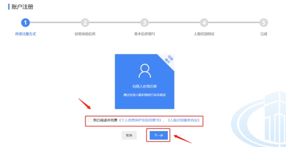 二、勾選“我已閱讀并同意《個(gè)人信息保護(hù)告知書(shū)》、《人臉識(shí)別服務(wù)協(xié)議》”,點(diǎn)擊“下一步”。