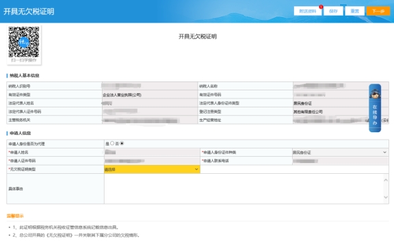 三、開(kāi)具無(wú)欠稅證明頁(yè)面進(jìn)行開(kāi)具。