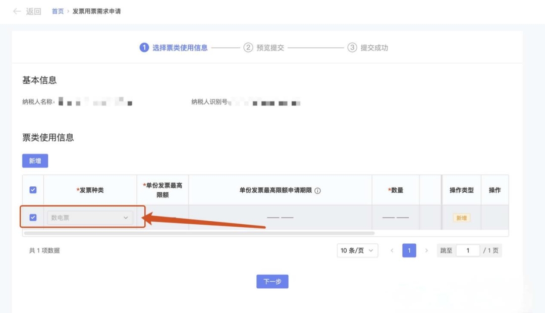 二、“票類使用信息”中選擇“新增”,勾選“數(shù)電票”。