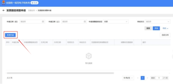 二、在“發(fā)票額度調(diào)整申請”界面,點(diǎn)擊【新增申請】。