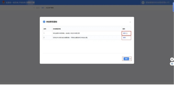 納稅人存在未辦結(jié)事項(xiàng),系統(tǒng)彈出提示框顯示您未辦結(jié)事項(xiàng)詳情。